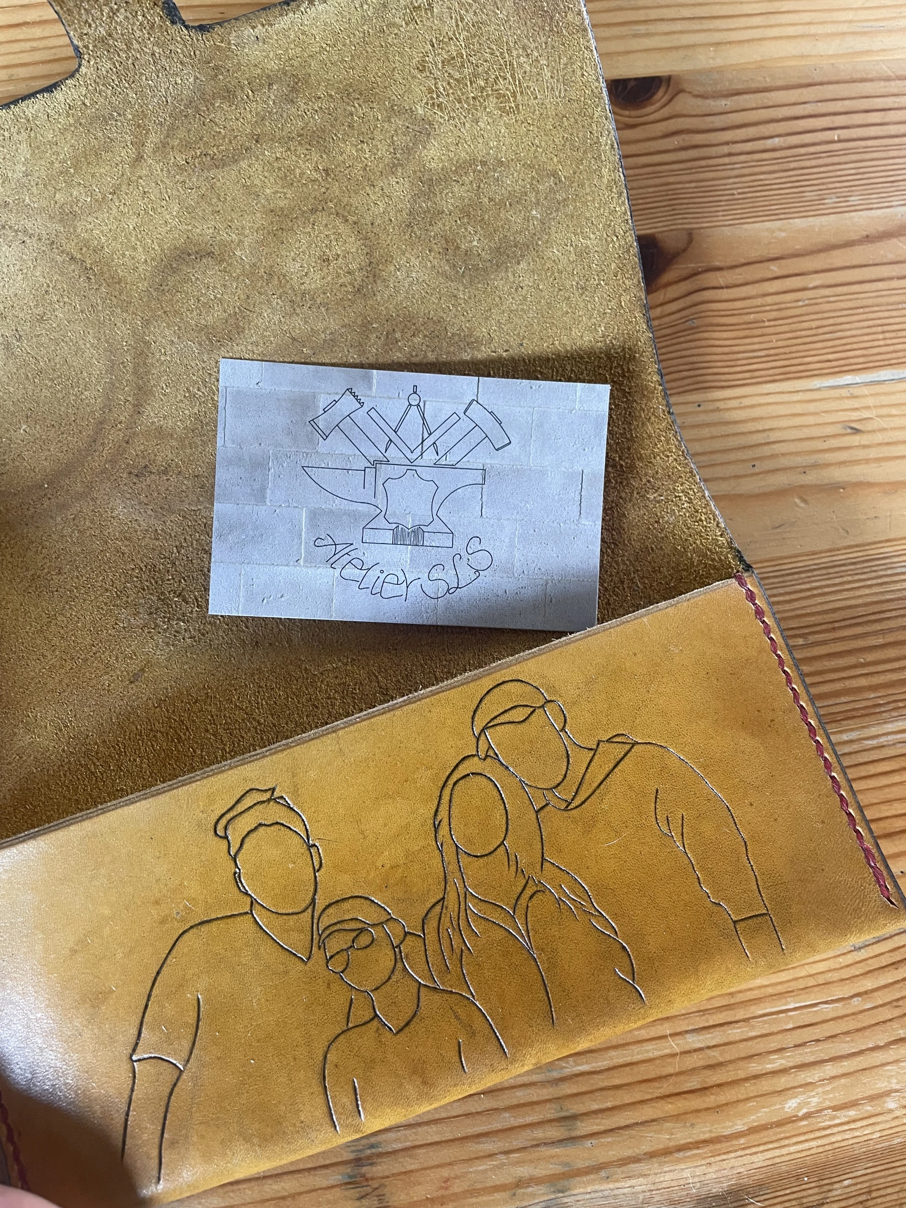 Portefeuille : Un portefeuille en cuir pleine fleur (tannage végétal naturel) est à la fois élégant et pratique. Il peut être conçu pour contenir de l'argent, des cartes de crédit, des documents d'identité et d'autres petits objets personnels. Le cuir étant résistant, il protège tout en restant esthétique et durable.